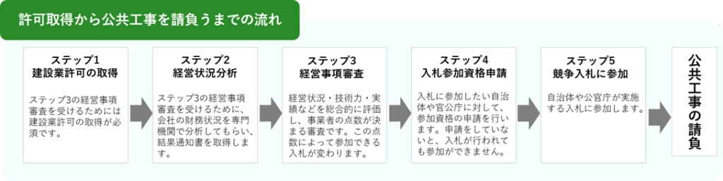 そもそも、公共工事を請負うためには経営事項審査というものを受けたうえで、入札参加資格申請を行う必要があります。この審査を受けた後に役所が公募する競争入札に参加できます。